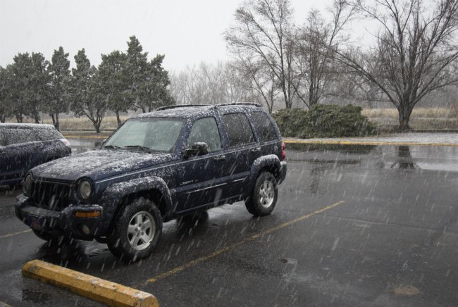 Rain has changed to snow in North Platte. I drove west about 20 miles on I-80 to see where the rain/snow line was at about 715am or so. It was 36F in North Platte when I left with light rain. By the time I reached mile marker 160, I was getting large snow flakes, but then it changed back to rain by about marker 158… this was likely due to precipitation intensity. As I was driving back, the temperature was holding steady about 34F and the rain was very chunky… about 75% melted snow as it was reaching the ground. As I got back to North Platte, it was almost entirely back to all snow as precipitation rate was fairly intense. So, as I type, I look out the motel window at heavy wet snow now finally. Now let’s commence the accumulation!
