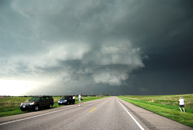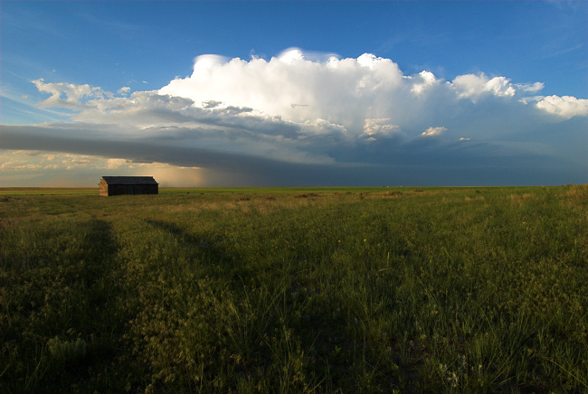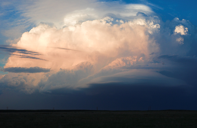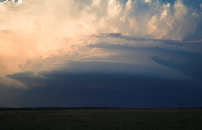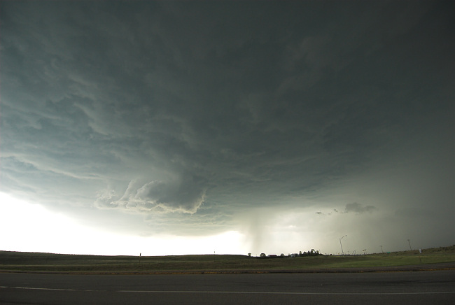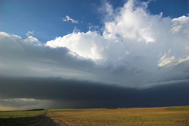 Sunday, June 1st was a pretty good day for storm photography. I targeted the far western Nebraska Panhandle, arriving at a location north of Pine Bluffs, WY by mid-afternoon. Storms first formed off the Laramie Range and struggled for quite some time. Finally, a cluster of severe storms formed just north of where I was positioned along Hwy 88 over far northwest Banner County, NE. Ultimately, a supercell was spawned out of this cluster northwest of Bridgeport. I repositioned myself to the southeast of Bridgeport after driving briefly through the core of the storm at Bridgeport, receiving 1" diameter hail. I met up with Matt Crowther, Greg Brenneman, and the "Original Twister Sisters" at the junction of Hwy 385/92 southeast of Bridgeport. I was greeted to a moderately rotating wall cloud to the immediate west southwest with dust being kicked up from the RFD. We followed this supercell to the southeast across a gridded dirt road network between Hwy 26 and I-80…east of Hwy 385 (northeast of Sidney). The storm had too much cool RFD air thanks to the high-based nature of the storm, but the structure was quite nice. When I reached Chappell, I continued south for photography opportunities from afar. The storm looked fantastic from the distant southwest. I photographed the storm from the distant southwest for the rest of the chase…while pretty much all the other chasers were up close. The isolated nature of this supercell was ideal for more distant structure shots given the pristine blue sky around the storm. I finally called it a chase about 17 miles SSW of Julesburg and drove up to Ogallala, NE for the night.