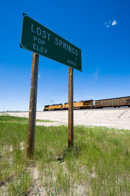 Day 4 was a down day as an upper level ridge was building across the northern Rockies.  We decided to take a leisurely drive up to Buffalo, WY via highway 20 and I-25 from Lusk.  We were hoping an isolated picturesque storm would form off the Big Horn mountains, but it wasn’t to be.  We stopped a couple times along the way after leaving Lusk to see a view of the old abandoned towns that Vince was interested in, such as Lost Springs, Manville, and Keeline along Highway 18.  The Lost Springs population according to the highway sign was One.  An updated sign in town said Three.  Anyway, it was interesting to see.  The Union Pacific rail line runs through there along Highway 18, and there were no less than 3 full coal trains that traveled east, supposedly coming from the Wright or Verse areas.  We got to Buffalo in the early evening with a convective-free sky.  We stayed at the Big Horn Motel again on Main Street in downtown.  The motel owner also owns a small ice cream parlor/mini-golf establishment a few blocks down a walking path along the Clear Creek, so we checked that out.  The little parlor was busy with a big line as they had some outdoor "family in the park" outing right there at this small park next to the parlor.