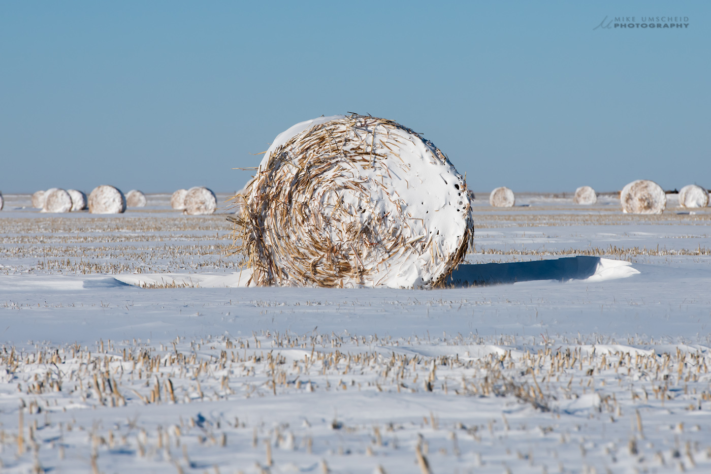 Frosted Hay Bale Following Ford County, KS Blizzard. 9 January 2024